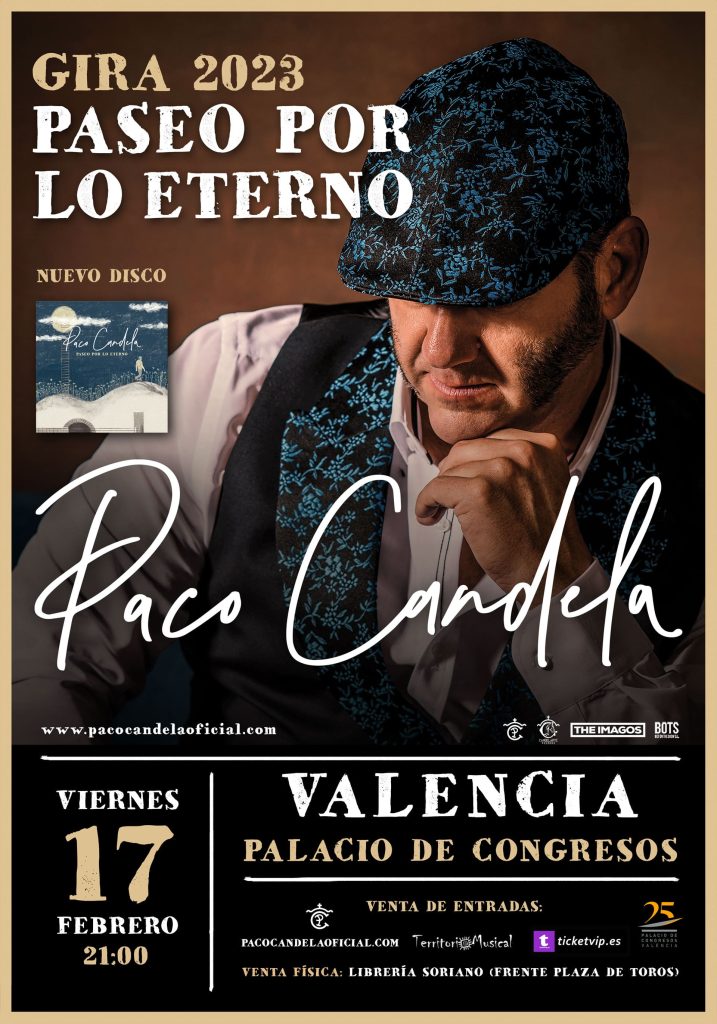 Tras su nominación a los Latin Grammy y Premios Odeón como mejor artista y álbum de música flamenca, Paco Candela presenta en concierto además de sus grandes éxitos, su nuevo trabajo: “Paseo por lo Eterno”. Disco en el que versiona canciones que el artista ha escuchado desde que era joven. Un homenaje y un repaso a esas canciones «eternas» que han interpretado grandes artistas como Alameda, Junco, Rocío Jurado, Los Chichos, Triana, Raphael o Pepe Pinto, entre otros…